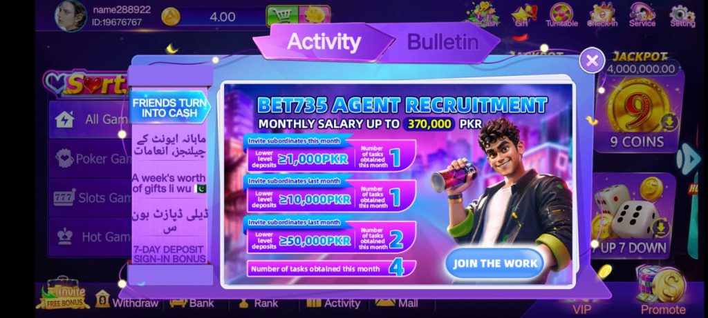 The platform operates using a reward-based gaming model where outcomes depend on luck, probability, and sometimes player strategy. Once registered, users gain access to several earning sections including slots, lottery draws, sports betting, fishing challenges, and card games. The app’s smooth interface and fast transaction system are key reasons behind its rising popularity.